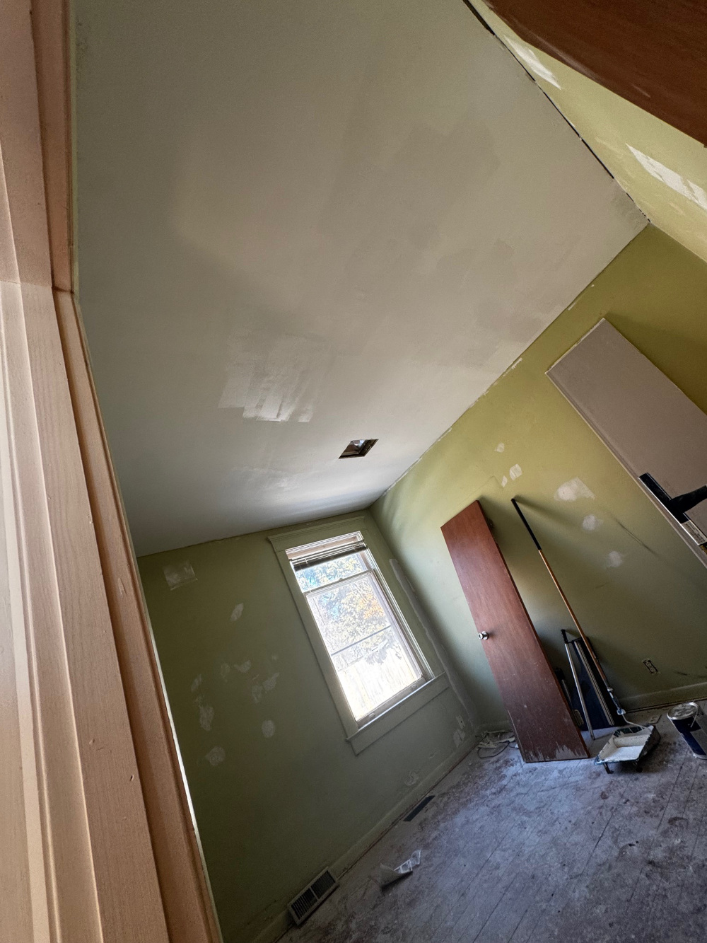 Here’s another project we have been tackling over the last 3 weeks. We started with a drywall overlay on the bedroom ceiling since the plaster was cracked and coming down. Finished off the drywall and have one coat of paint on it. We will be tackling the kitchen and bathroom remodel in the next several weeks. The customer is allowing 2 months to renovate the entire house so they can get it back on the rental market. More pictures to follow over the next several weeks.